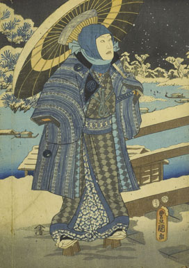 "Geisha en la nieve con sombrilla". Kunisada.